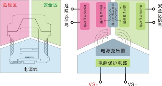 SB3000-Ex系列隔離柵通過(guò)光、電、磁等隔離技術(shù)對(duì)供電電源、輸入端信號(hào)和輸出端信號(hào)三者進(jìn)行兩兩隔離,從而實(shí)現(xiàn)現(xiàn)場(chǎng)設(shè)備和控制系統(tǒng)之間的隔離信號(hào)傳輸,是現(xiàn)場(chǎng)設(shè)備和控制室設(shè)備間的隔離接口單元。