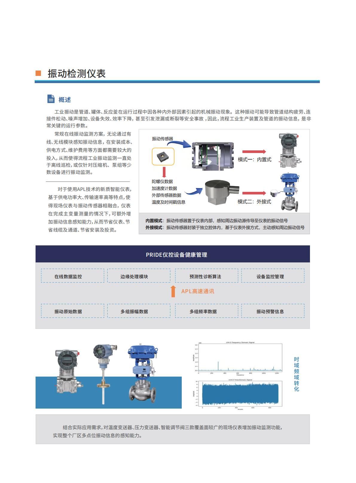 對于使用APL技術(shù)的新質(zhì)智能儀表,基于供電功率大、傳輸速率高等特點(diǎn),使得現(xiàn)場儀表與振動(dòng)傳感器相融合, 儀表在完成主變量測量的情況下,可額外增加振動(dòng)信息感知能力,從而節(jié)省儀表、節(jié)省線纜及通道、節(jié)省安裝及投資。